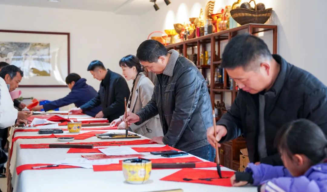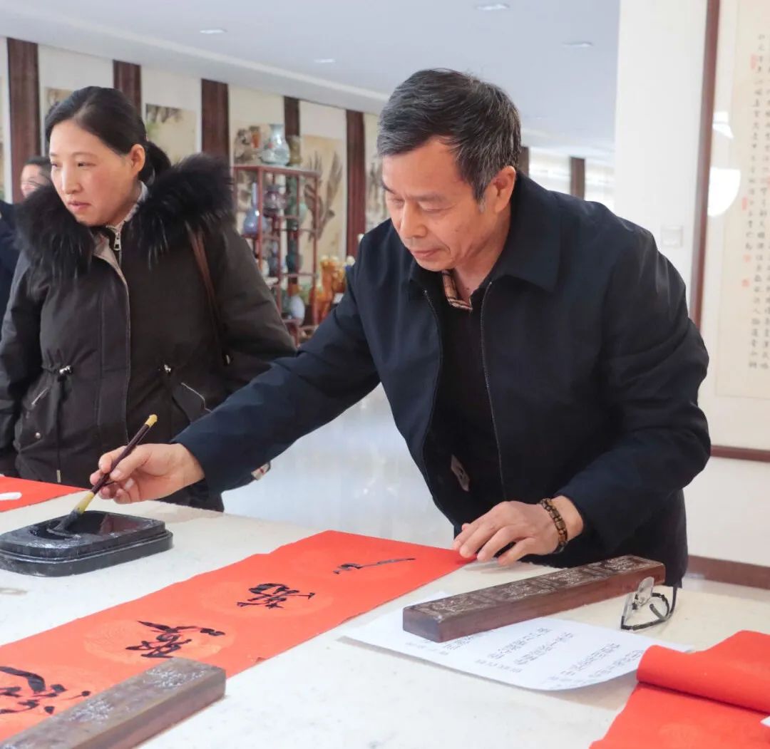 随后,书写春联活动正式启动。活动现场,氛围热烈祥和,充满了浓厚的节日气氛。大家热情高涨,纷纷挥毫泼墨,创作出一副副寓意美好的对联和祈求幸福生活的福字。这些春联不仅寓意着新春祝福,更寄托了人们对美好生活的期许。