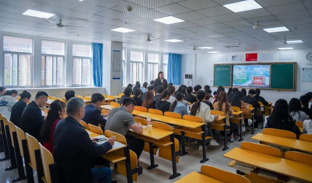 张旭虹一行走进思政课堂听取马克思主义学院晁晔教师讲授的《形势与政策》课程,仔细观察教师教学组织、学生听课状态和学习效果,并作听课记录。
