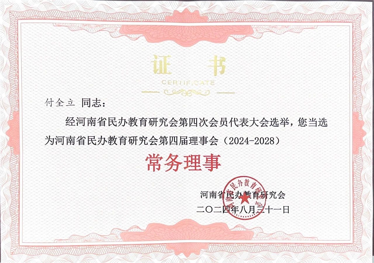 我校理事长付全立当选河南省民办教育研究会常务理事
