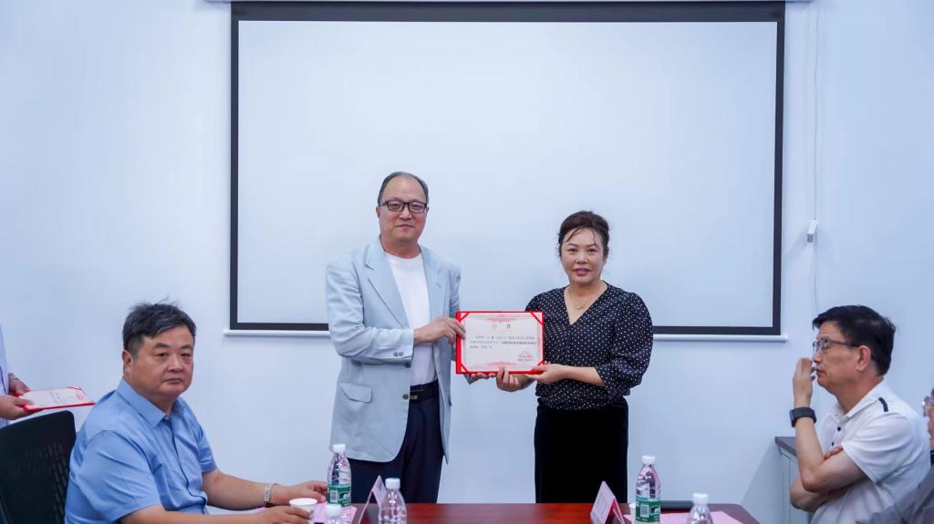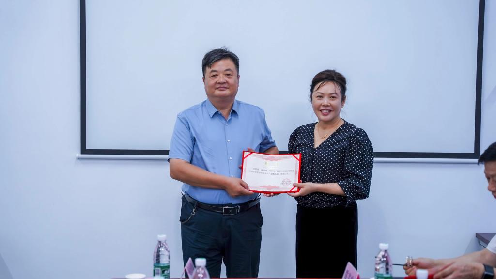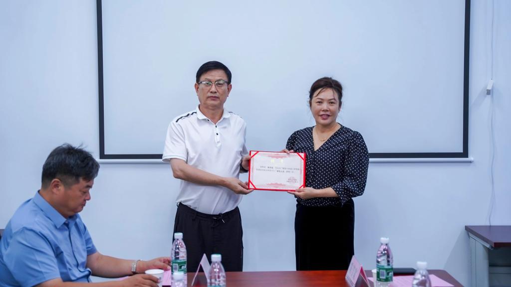 李文渊宣布了学校关于研发中心的任命,刘艳萍为外聘人员颁发聘书。